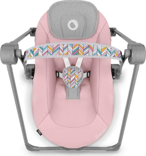 Pevný a stabilní ocelový rám, tiché a energeticky úsporné houpání, 5 rychlostí houpání měkké a odnímatelné polstrování (lze prát ručně), polštářek po podepření hlavičky dítěte, 5ti-bodové bezpečnostní pásy, hrazdička s interaktivními hračkami - po zmáčnutí vydávají zvuky, rozvíjí představivost a motoriku, USB kabel (pozn. síťový adaptér pro USB kabel není součástí balení) , časovač houpání, napájení 2 způsoby: přiloženým napájecím zdrojem nebo 4 ks baterií LR14 (baterie nejsou součástí výrobku), snadno se skládá.