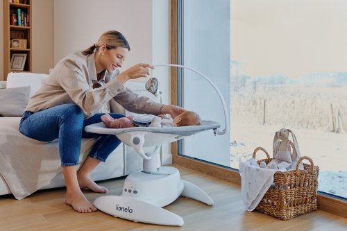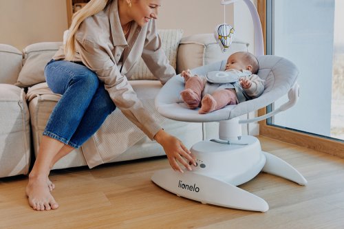 Intuitivní ovládání: Dětské houpací křeslo Iris je tichým pomocníkem pro každého rodiče - a to i v pravém slova smyslu - díky téměř bezhlučnému chodu motoru je houpací křeslo neslyšné. Ovládací panel je umístěn ve střední části základny, takže ovládání zařízení je velmi intuitivní.