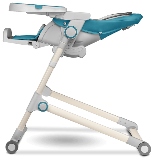 4 úrovně nastavení výšky pro krmení 3 úrovně nastavení opěradla - od sedu do polohy vleže 5ti bodové bezpečnostní pásy 3 úrovně nastavení opěrky nohou 2 úrovně nastavení dvojitého podnosu (vnější lze umýt v myčce nádobí) polstrování lze sundat a snadno čistit měkká vložka pro mladší děti obsahuje 75% bavlny kolečka šetrná k podlaze snadné skládání, funkce Easy Stand, vhodná na cesty