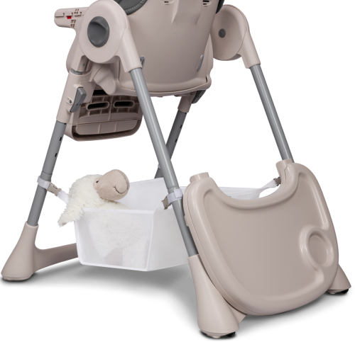 odolný ocelový rám 4 úrovně nastavení výšky nastavení opěradla protiskluzové podložky na předních nohách zabraňují převrácení židle plastová kolečka na zadních nohách židle 5ti bodové bezpečnostní pásy dvoudílný nastavitelný podnos se speciálním místem pro šálek (odnímatelnou horní část lze mýt v myčce na nádobí) ergonomické sedadlo pohodlné měkké čalounění lze snadno čistit velký koš na příslušenství nebo hračky snadné a rychlé skládání, vhodná na cesty