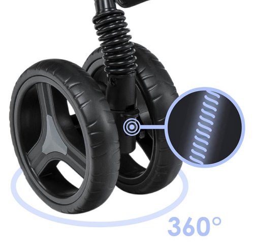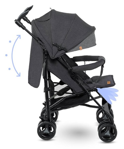 6" kola z pěny EVA s tlumiči na předních kolech a brzdovými pedály 4 stupňové nastavení opěradla ze sedu až do polohy vleže nastavitelná stříška XXL se síťovaným okýnkem rukojeti lze otočit o 360° pro lepší pohodlí rodiče snadné skládání a rozkládání potah je z kvalitní lněné látky v módních barvách 5ti bodové bezpečnostní pásy prostorný koš na nákup praktická kapsa a organizér moskytiéra
