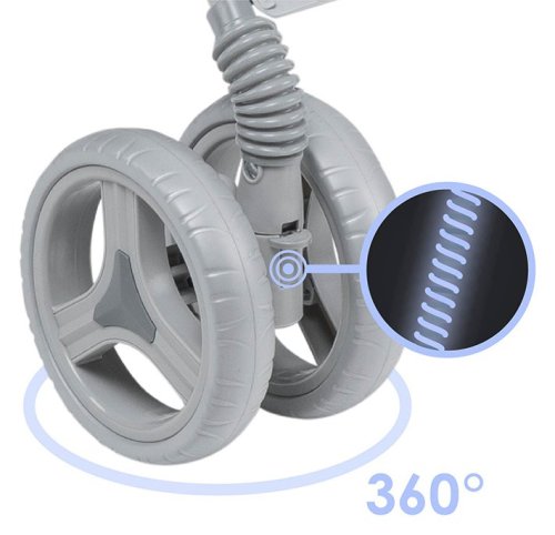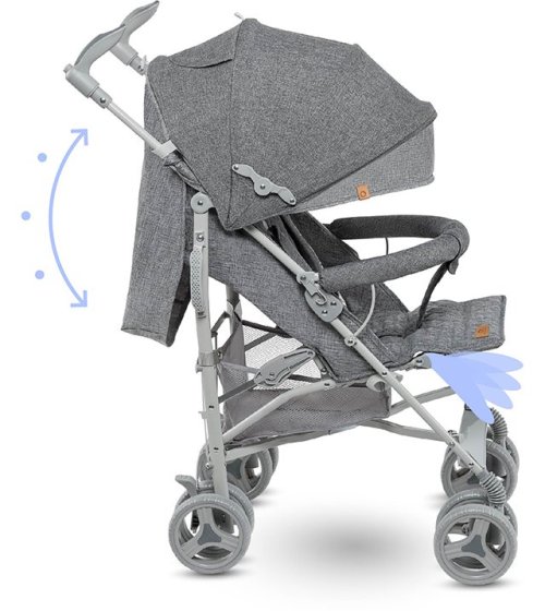 6" kola z pěny EVA s tlumiči na předních kolech a brzdovými pedály 4 stupňové nastavení opěradla ze sedu až do polohy vleže nastavitelná stříška XXL se síťovaným okýnkem rukojeti lze otočit o 360° pro lepší pohodlí rodiče snadné skládání a rozkládání potah je z kvalitní lněné látky v módních barvách 5ti bodové bezpečnostní pásy prostorný koš na nákup praktická kapsa a organizér moskytiéra