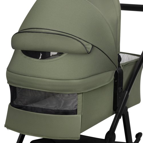 Zvětšená korba pojme batole i s nánožníkem a je větraná z mnoha stran, takže je vhodná pro všechna roční období. Je umístěna vysoko,aby rodič měl k dítěti snadnější přístup. Silná pěnová matrace s bavlněným potahem poskytuje správnou oporu celému tělu vašeho dítěte. Lze nastavit výšku rukojeti, sklon opěradla nebo výšku opěrky nohou. Košík s víkem na zip chrání přenášené předměty a nákup před znečištěním a doplňky, jako jsou kapsy na dudlík, zvyšují funkčnost kočárku. Amber Plus je stylový a praktický kočárek na celý rok.