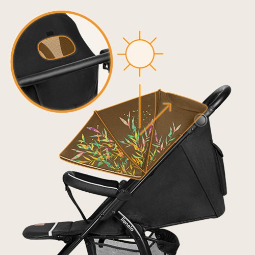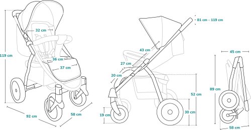 Také pro novorozence!: V kočárku lze bezpečně vozit děti ihned po narození! Sedadlo se dá složit naplocho (vznikne tak velký prostor dlouhý až 90 cm!) a speciální redukční vložka pro nejmenší děti zaručuje anatomicky správnou polohu, pohodlí a bezpečnost. Voděodolná boudička XXL s filtrem UPF50+: Zajišťuje dítěti dostatek místa a účinně chrání proti slunci, větru nebo dešti. Má přídavný, rozepínatelný panel, kukátko a reflexní prvky. UPF50+ je nejsilnější protisluneční filtr nasazovaný na tkaniny. Velká, bezúdržbová kola: Jsou vyrobena z polyuretanu, kombinují jízdní komfort s odolností. Je to materiál, který se prakticky neopotřebovává. Jsou protektorovaná a umožní vám pohodlnou procházku v každém terénu, nepropichují se a není třeba je foukat. Přední kola se otáčejí o 360°. Velmi dobré odpružení: Je to kočárek, se kterým nebudete cítit každý kámen na cestě – právě naopak. Nezávislé odpružení předních a zadních kol přispívá k tomu, že dítě (a jeho rodiče) pociťuje o mnoho méně otřesů a procházka je pohodlná. Jednoduché udržování čistoty: Opěrka nohou je potažena ekokůží v místě, kde se obvykle nacházejí boty dítěte, aby bylo možné jednoduše odstranit veškeré nečistoty. Potah kočárku a koš můžete prát v ruce. Prostorný koš: Koš pod kočárkem je prostorný a snadno přístupný, díky čemuž se kočárek osvědčí při nákupech. Reflexní prvky a příslušenství: Reflexní prvky na opěrce nohou, madlu a stříšce výrazně zlepšují viditelnost na silnici a zvyšují tak bezpečnost. V sadě s kočárkem dostanete také moskytiéru, držák na hrnek, redukční vložku a ochranný potah na nohy. Vhodný také pro vyšší osoby: Rukojeť kočárku má až 9 stupňů nastavení, což umožňuje rodičům přizpůsobit její polohu své výšce, aby procházka byla pohodlnější a zdravější pro páteř.
