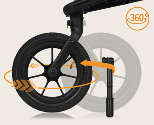 Nafukovací kola: Tři prostorná (30 a 39 cm) nafukovací kola zajišťují velmi pohodlnou manipulaci a manévrovatelnost, která usnadňuje překonávání překážek. Kola se mohou volně otáčet o 360° a v případě potřeby je lze také zablokovat pro jízdu přímo vpřed.