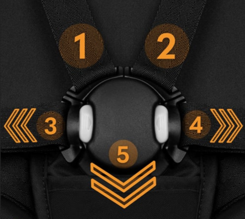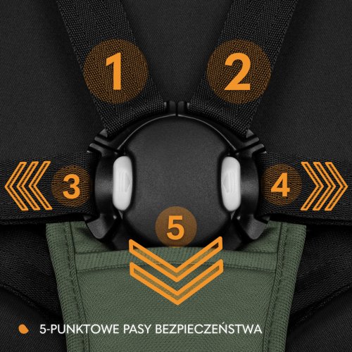 Magnetické pásy: Pětibodové bezpečnostní pásy lze snadno zapnout díky magnetické sponě – stačí je přiblížit ke sponě, aniž byste museli jednotlivé díly ručně utahovat. Speciální kryty popruhů chrání jemnou pokožku dítěte před odřením.