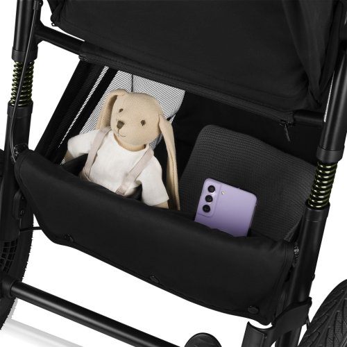 Řešení pro rodiče: Nastavení rodičovské rukojeti v 9 pozicích umožňuje nastavit výšku tak, aby vyhovovala potřebám každého pečovatele. Velký a snadno přístupný košík na nákupy s kapsou na láhev je skvělý pro každodenní použití. Ke kočárku Azura lze také zakoupit speciální adaptéry na autosedačku, které umožňují připevnění autosedačky k podvozku.
