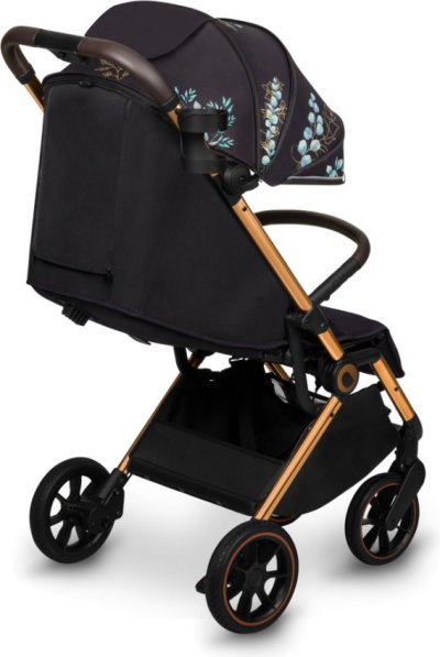 bezúdržbová kola z pěny EVA s tlumiči nárazů z PU, otočná přední kola o 360°, nastavitelné opěradlo až do ležící polohy, nastavitelná nepromokavá XXL stříška s filtrem UPF50+ a s okýnkem, reflexní prvky, 5ti bodové bezpečnostní pásy, opěrka na nohy z ekokůže, systém click+amp;ride umožňuje rodičům dělat dlouhé kroky a nožní brzda zaručí bezpečné zastavení, nákupní koš s maximální nosností 3kg, držák na nápoje, nánožník, automatické skládání po stisknutí tlačítka, speciální potah a pás na přenášení složeného kočárku.