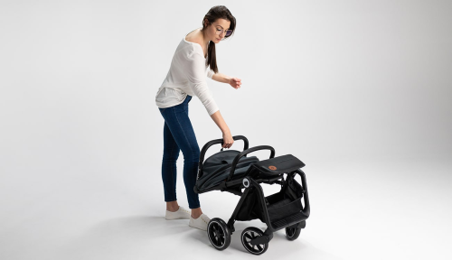 bezúdržbová kola z pěny EVA s tlumiči nárazů z PU, otočná přední kola o 360°, nastavitelné opěradlo až do ležící polohy, nastavitelná nepromokavá XXL stříška s filtrem UPF50+ a s okýnkem, reflexní prvky, 5ti bodové bezpečnostní pásy, opěrka na nohy z ekokůže, systém click+amp;ride umožňuje rodičům dělat dlouhé kroky a nožní brzda zaručí bezpečné zastavení, nákupní koš s maximální nosností 3kg, držák na nápoje, nánožník, automatické skládání po stisknutí tlačítka, speciální potah a pás na přenášení složeného kočárku.