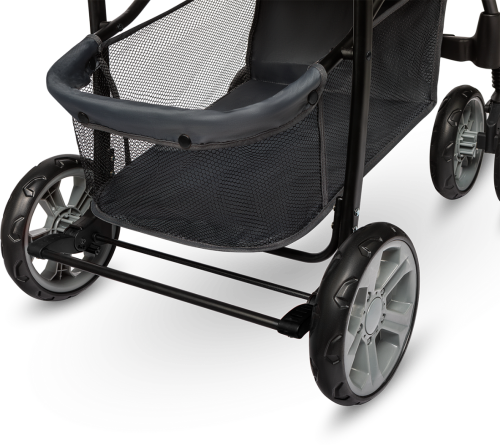 vyroben z vysoce kvalitních materiálů pevný rám zajišťující stabilitu 5ti bodové bezpečnostní pásy dvoustupňová stříška se síťovaným okýnkem měkká matrace odolná proti oděru a nečistotám velký úložný prostor ve spodní části kočárku praktická taška vhodná pro přenášení potřebných věcí odpružená kola a kola s brzdou rychlé skládání a zámek proti nechtěnému složení ověřená kvalita certifikační laboratoří SGS