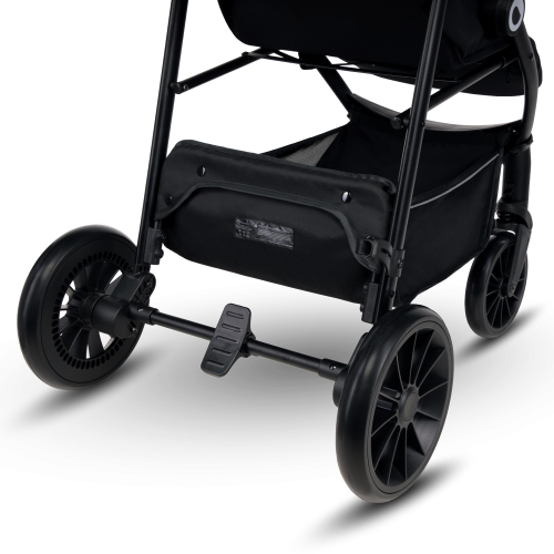 vyroben z vysoce kvalitních materiálů tlumiče nárazů na předních i zadních kolech kočárku dvojité odpružení kol otočná (360°) bezúdržbová kola z pěny EVA (přední 6,7", zadní 9,25") zámek předních kol pro jízdu rovně hliníkový rám, lehká a odolná konstrukce vícestupňové nastavení opěrky zad až do polohy vleže (pomocí pásku) 2-úrovňové nastavení opěrky nohou odnímatelné madlo pro děti (na obou stranách kočárku) 5ti bodové bezpečnostní pásy 2-úrovňové nastavení bezpečnostních pásů vícestupňová stříška XXL se síťovanou částí, materiál stříšky odráží UV (filtr UPF 50+) voděodolný materiál stříšky a sedáku, snadno se udržuje a čistí rukojeť z eko-kůže velký koš na nákup ve spodní části kočárku reflexní prvky moskytiéra (skrytá v opěrce nohou) držák na nápoje rychlé skládání a zámek proti nechtěnému složení