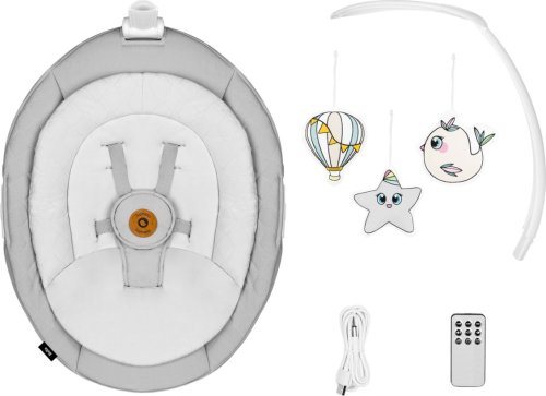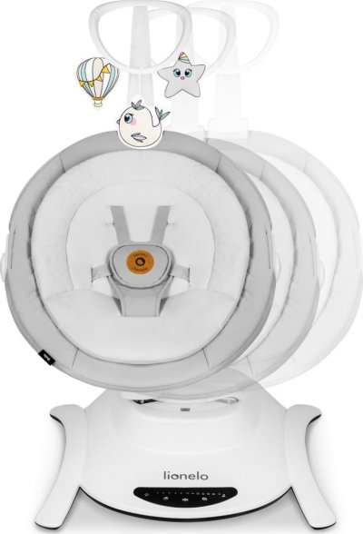 široké, vhodně tvarované sedátko zajišťuje pohodlnou a bezpečnou polohu dítěte polštářek na opěrku hlavy 5-ti bodové bezpečnostní pásy 6 režimů pohybu - 5 základních režimů a jeden, který se mění každých 16 sekund automatický detektor pohybu - aktivuje houpání a hudbu, při zaznamenání pohybu otočné o 360 ° 3 polohy sklonu opěrky přehrávání 12 melodií, ovládání hlasitosti prodyšná bambusová tkanina ovládaní pomocí dotykového panelu nebo pomocí ovladače maximální nosnost 9 kg odnímatelné polstrování lze prát ručně