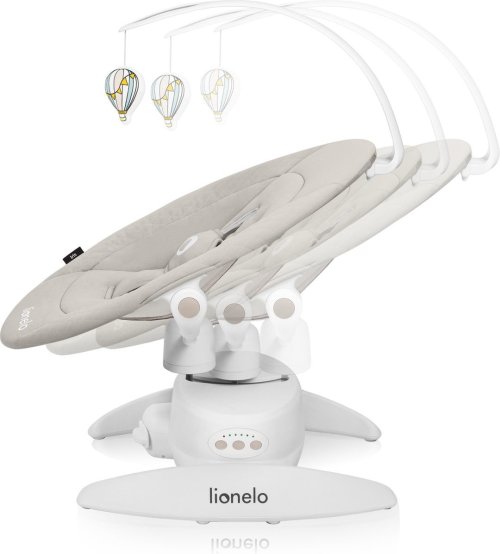 určeno pro děti od narození do doby, než dosáhnou hmotnosti 9 kg nebo zvládnou sedět široké, vhodně tvarované lehátko zajišťuje pohodlnou a bezpečnou polohu dítěte otočné o 360 ° 3 polohy sklonu opěrky 3 houpací pohyby v kombinaci s 5 stupňovým nastavením rychlosti tichý chod motoru 5-ti bodové bezpečnostní pásy s polstrováním ovládací panel je ve střední části základny přehrávání 12 melodií, ovládání hlasitosti napájení 2 způsoby: 4 ks 1,5V baterie AA (nejsou součástí balení) nebo USB kabel, který je součástí balení (používejte se síťovým adaptérem 5,8V DC 0,8A) odnímatelná hrazdička s hračkami maximální nosnost 9 kg protiskluzové podložky na základně odnímatelný potah lze prát při max 30°C