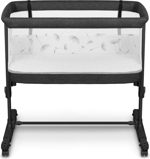 robustní kovový rám průhledná prodyšná síťovina různá nastavení výšky postýlky nastavení sklonu boční otevírací strana snadné přemisťování postýlky díky 4 kolům se zámkem postýlka má funkci kolébky měkká a pohodlná matrace snímatelný a pratelný potah i matrace součástí balení praktická taška na přenášení