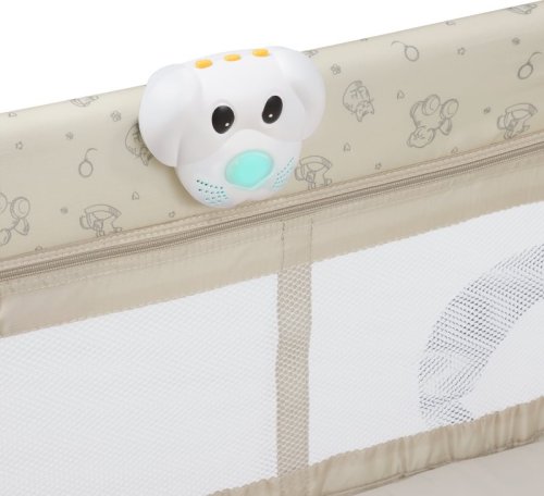 boční vchod se zipem + zámek, síť proti hmyzu, madla pro učení stoupání, bez ostrých hran, kvalitní měkká podložka odolná proti oděrům, systém LockGuard proti nechtěnému složení, melodie a interaktivní pes, nastavení výšky matrací do 2 různých úrovní, přebalovací pult + postranní panel se 3 kapsami, ověřená kvalita od certifikační společnosti SGS, kola s brzdou a pevné nohy, Nosnost: bez vyvýšení matrace do 15 kg, s vyvýšením matrace do 9 kg.