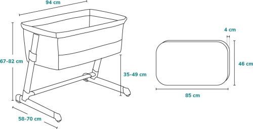 výškově nastavitelná do 5 úrovní, lze nastavit různý sklon matrace slouží jako přistýlka, samostatná postýlka i jako cestovní postýlka měkká a pohodlná matrace o velikosti 87 x 50 x 4 cm - lze vyjmout a prát v pračce díky kolečkům a šikmým nohám lze přisunout postýlku k posteli rodičů, což je výhodné pro kojící matky vzdušná síť po stranách zajišťuje správnou cirkulaci vzduchu blokování výškového nastavení zabraňuje nechtěným změnám výšky bezpečnostní pásy pro připevnění postýlky k posteli rodičů síť proti komárům ochrání dítě před hmyzem - postýlku lze umístit i ven