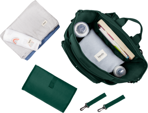 multifunkční batoh na záda, na kočárek nebo jako samostatný doplněk - kapsa na přebalování může sloužit na tablet nebo notebook vyrobeno z pevného nepromokavého neoprenu lze prát v pračce rozměry: 36 x 36 x 23 cm zapínání na zip 12 praktických kapes a přihrádek odmímatelné univerzální přezky pro připevnění k jákémukoli modelu kočárku pomocí přezek lze změnšit velikost batohu tak, aby se vešel i pod sedadlo v letadle