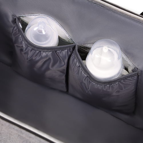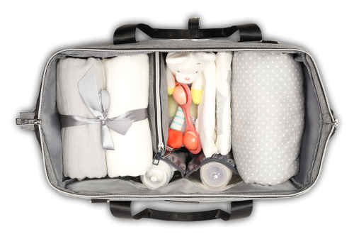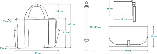 rozměry: 50 x 35 x 24 cm objem 20 l 100% polyester zapínání na zip vnější kapsy: 2 kapsy na zip, 2 postranní kapsy pro doplňky vnitřní prostor: 1 velká kapsa na zip, 1 velká kapsa na suchý zip, 2 kapsy na láhve ramenní popruh pro praktické přenášení pásky pro připevnění na rukojeť kočárku obsahuje: přebalovací podložku a toaletní tašku