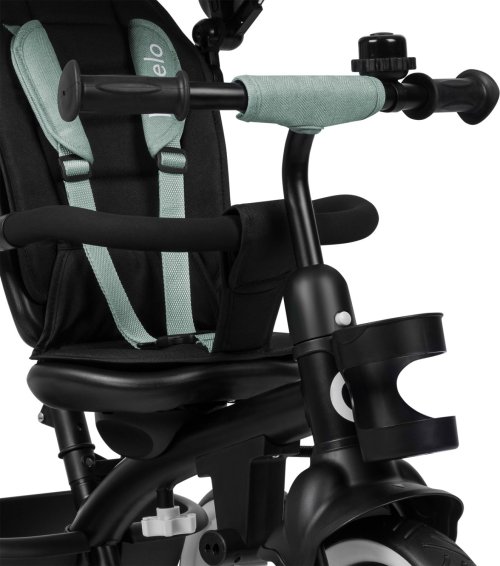otáčecí sedátko o 360° s polstrováním na celé ploše 3bodové bezpečnostní pásy pro malé děti bezpečnostní zábrana kolem sedadla madlo se zvonkem součástí je prostorná taška na potřebné věci a držák na nápoj jednoduché skládání do kompaktní velikosti velká bezúdržbová PU kola brzda na zadních kolech výškově nastavitelná rukojeť pro rodiče: 82 - 100 cm velká stříška chrání dítě před sluncem, větrem a deštěm nastavení sedadla vpředu,vzadu reflexní lemování na stříšce polstrování na sedadle a opěradle velikost předního kola: 26 cm velikost zadních kol: 23 cm snadná a rychlá montáž tříkolku lze snadno složit bez použití nářadí