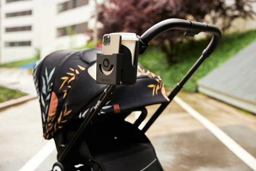 Otočné uchycení umožňuje montáž v libovolném úhlu a z libovolné strany – pohodlné řešení pro leváky i praváky. Samostatná hluboká kapsa pojme i větší telefon a možnost rychle umístit do držáku 2 užitečné předměty současně usnadňuje péči o dítě, protože rodič má díky tomu volné ruce.