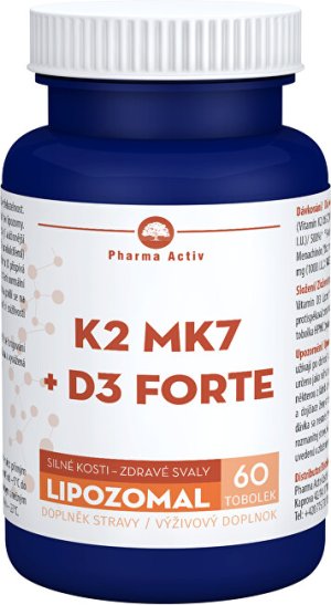Lipozomální K2 MK7 + D3 Forte je doplněk stravy, který má v porovnání s jinými formami mnohem vyšší vstřebatelnost. Je to dáno tím, že vitamín D3 je obalen fosfolipidovými bublinkami tzv. lipozomy. Lipozomální obal chrání vitamín D3 před degradací, umožňuje rychlejší a účinnější vstřebávání, stejně tak lepší přístup do nitra buněk. Vitamin D3 (cholekalciferol) přispívá k normálnímu vstřebávání/využití vápníku a fosforu. Vitamin D přispívá k normální hladině vápníku v krvi a normálního stavu kostí, k udržení normální činnosti svalů, stavu zubů, podporuje přirozenou funkci imunitního systému a podílí se na procesu dělení buněk. Vitamin K2 (menachinon) přispívá k normální srážlivosti krve a udržení normálního stavu kostí. Nezapomeňte, že zdravý způsob života a vyvážená strava zajišťují řádné fungování organismu a dobrou kondici.