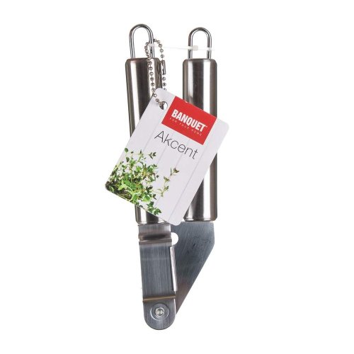Lis na česnek AKCENT z nerezové oceli pro profesionální i domácí použití. Lis je opatřen praktickým očkem pro možnost zavěšení, snadno se udržuje, má praktickou vyndavací mřížku a lze mýt v myčce na nádobí. Řada kuchyňského náčiní AKCENT splňuje náročné požadavky profesionálů a je vhodná i pro domácí použití. Jednoduchý funkční design zabezpečuje nadčasovost a dlouhou morální i kvalitativní životnost všech výrobků.