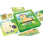 Balení obsahuje devět obrázků: 1 x 1 dílek (umístěn na dnu skládací krabičky) 3 x 2 dílky 3 x 3 dílky 1 x 4 dílky 1 x 5 dílků Vhodné pro děti od 1 do 4 let. Rozměr složeného puzzle cca 5,5 x 5,5 cm - 17,5 x 17,5 cm