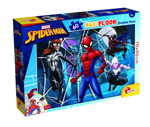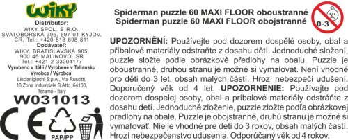 Lisciani Spider-Man maxi floor puzzle oboustranné. 60 dílků. Rozměr 70x50cm. Postav obrázek na jedné straně a vybarvi obrázek na druhé.