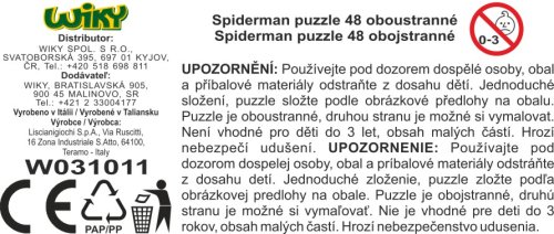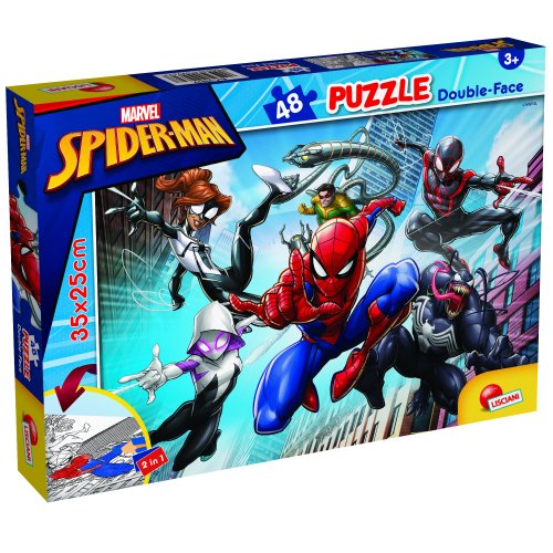 Lisciani Spider-Man puzzle oboustranné. Rozměry 35x25 cm. 48 dílků. Postav obrázek na jedné straně a vybarvi obrázek na druhé.