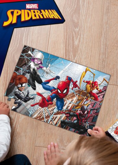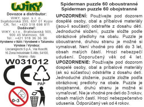 Lisciani Spider-Man puzzle oboustranné. 60 dílků. Rozměr 50x35 cm. Postav obrázek na jedné straně a vybarvi obrázek na druhé.