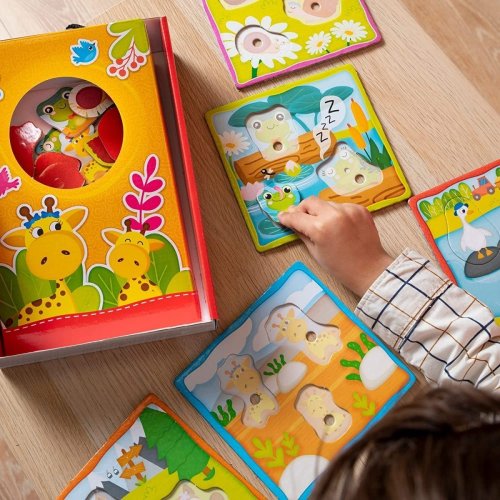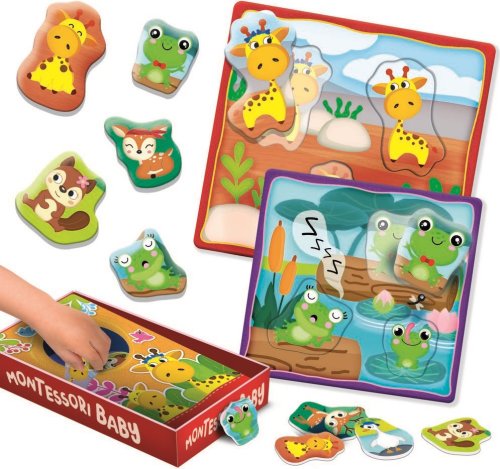 Děti se učí poznávat zvířátka a jejich přirozené prostředí Skládání rozvíjí soustředění a logiku, pozornost a trpělivost. Balení obsahuje 18 obrysových (vkládacích) dílků a 6 podkladových obrázků. Z krabičky je možné si vytvořit 3D box na ukládání a losování vkládacích dílků.