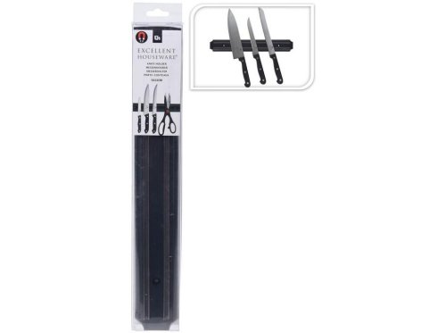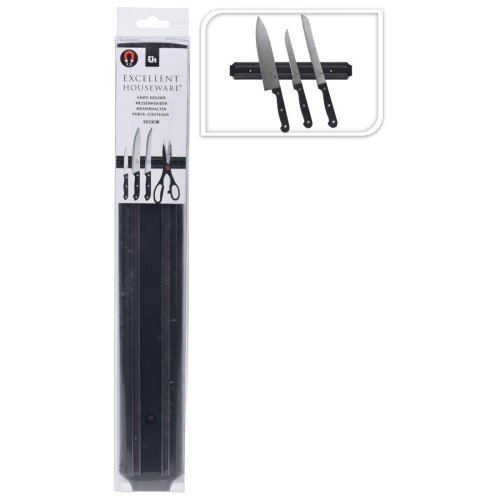 Magnetická lišta na nože, o délce 33 cm, je praktický pomocník do každé kuchyně. Díky ní budete mít nože neustále po ruce. Povrch lišty je z plastu, v černé barvě. Pevné uchycení nožů zajišťuje dvojice silných magnetických pásků. Magnetickou lištu je možné uchytit prakticky na jakoukoliv zeď. Upevňovací materiál je součástí balení.