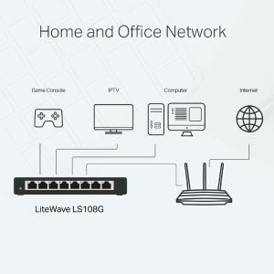 8portový gigabitový stolní switch představuje snadný a cenově dostupný způsob rozšíření vaší kabelové sítě. Switch se navíc může pochlubit podporou AUTO-MDI/MDIX a funkcí řízení toku dat (flow control).
