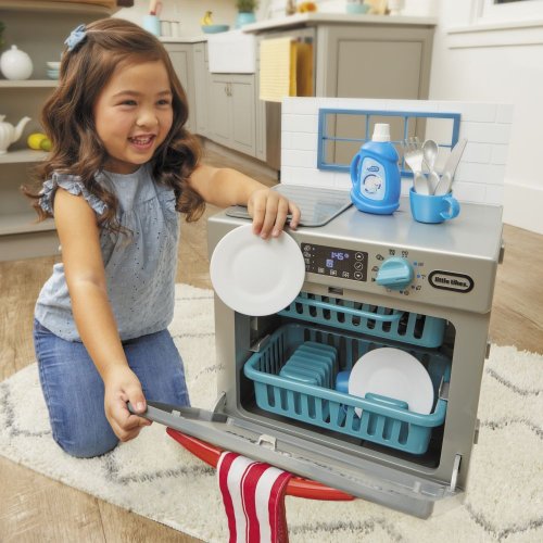 Little Tikes Moje první myčka je interaktivní hračka, která je navržena tak realisticky, že vypadá jako skutečná myčka. Děti mohou předstírat, že myjí v kuchyni stejně jako jejich rodiče.