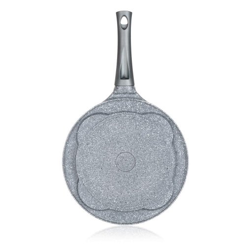 Litá hliníková pánev na lívance GRANITE Grey, s indukčním dnem a vnitřním nepřilnavým povrchem, je vhodná na přípravu lívanců a vaječných omelet s minimální potřebou tuku. Pánev je vhodná na všechny typy sporáků včetně indukce. Pánev je velmi odolná a snadno se udržuje. Pánev je opatřena ergonomickou rukojetí se soft - touch povrchovou úpravou pro snadnou manipulaci a očkem pro zavěšení. Lívanečník můžeme použít na přípravu lívanců, vaječných omelet, volských ok nebo třeba bramboráků s minimální spotřebou tuku.