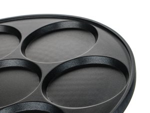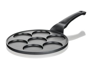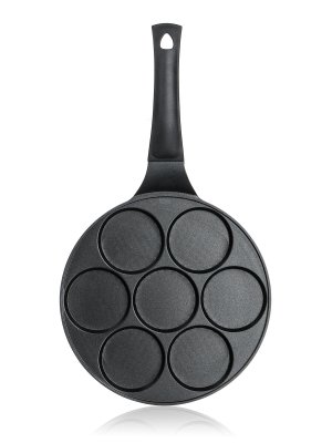 Hliníková litá pánev na 7 lívanců ALIVIA Smile má vnitřní nepřílnavý povrch a je vhodná na všechny typy sporáků včetně indukce.