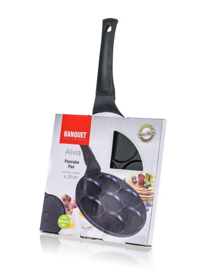 Lívanečník ALIVIA 26 cm, 7 lívanců, nepřilnavý povrch. průměr: 26 cm nepřilnavý povrch Hliníková litá pánev na 7 lívanců ALIVIA Smile má vnitřní nepřílnavý povrch a je vhodná na všechny typy sporáků …