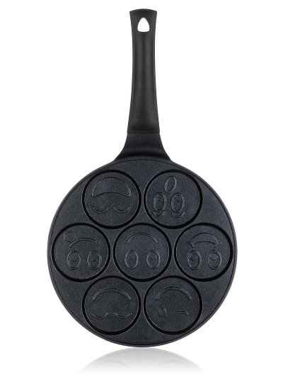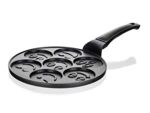 Hliníková litá pánev na 7 lívanců ALIVIA Smile má vnitřní nepřílnavý povrch a je vhodná na všechny typy sporáků včetně indukce. Lívanečník s dětskými motivy na dnu pánve, můžeme použít na přípravu lívanečků, volských ok a bramboráků o průměru 8 cm.