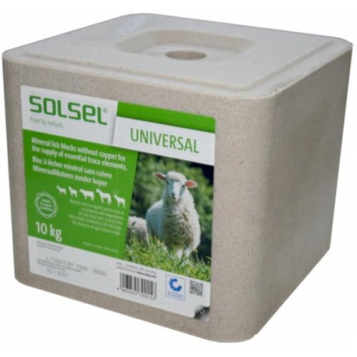Solný minerální liz Solsel bez mědi pro ovce, kozy, koně, dobytek a zvěř 10 kg - schváleno pro využití v ekologickém zemědělství. Solný liz obohacený minerály pro všechna hospodářská zvířata zvěř, zejména pro ovce a kozy. Vedle soli (chloridu sodného) spotřebuje každé zvíře celou řadu dalších minerálů. Stopové prvky s prokázaným biochemickým významem jsou zinek, mangan, měď, železo, jod, kobalt a selen. Každý z těchto prvků plní důležité úkoly v organismu zvířete. Individuální potřeba minerálů každého zvířete se však může značně odlišovat – i uvnitř stejnorodých věkových nebo užitných skupin. Minerální lizy SOLSEL pro ovce, zajistí vedle základního a jadrného krmiva další spontánní doplnění minerálů solným lizem. Při receptuře tohoto speciálního lizu pro ovce, bylo upuštěno od užití mědi, aby se předešlo nesnášenlivosti typické pro tento druh zvířete. Minerální lizy SOLSEL pro ovce se vyrábějí z čisté kamenné nebo vakuové soli s přídavkem speciální minerální směsi a lisovány jsou speciální tlakovou metodou. Stálá celistvost kostek je výsledkem dlouhé řady pokusů a permanentních testů tvrdosti. To zaručuje vysokou odolnost povětrnostním vlivům, stejně tak rovnoměrnou konzumaci zvířetem. Minerální lizy SOLSEL pro ovce byly jako samostatné krmivo vyvinuty zvlášť pro ovce. Mohou být ale bezpečně užity i při výkrmu skotu, koní, koz, prasat nebo divoké zvěře. Rozměry: 10 kg krychle o rozměrech cca. 185 × 185 × 155 mm (d × š × v),průměr středového otvoru cca.30 mm Trvanlivost: 3 roky od data výroby Podmínky skladování: Musí být zabezpečena ochrana před vlhkostí a kontaminací a musí být zabráněno proniknutí do podloží. Složení: Sodík 38 % Vápník (Ca) 0,5 % Hořčík (Mg) 0,1 % Fosfor (P) 0 % Mangan (oxid manganatý) 1000 mg/kg Zinek (oxid zinečnatý) 1000 mg/kg Železo (uhličitan železnatý) 200 mg/kg Jod (jodičnan vápenatý) 100 mg/kg Kobalt (uhličitan kobalnatý) 20 mg/kg Selen (seleničitan sodný) 20 mg/kg As Max. 12 mg/kg F Max. 2000 mg/kg Cd Max. 5 mg/kg Pb Max. 15 mg/kg Hg Max. 0,2 mg/kg