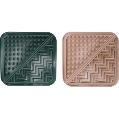 Lízací podložka Vami poskytne vašemu zvířecímu kamarádovi během jídla zábavnou výzvu. Podložka opatřená přísavkami je vyrobená z pružného silikonu. Lze ji natřít pastou či vlhkým krmivem a umístit na zem nebo i svisle na hladký povrch (dlaždice, vana apod.). Díky ohebné střední části lze umístit i do rohu např. sprchového koutu. Lízací podložka zabraňuje hltání, masíruje jazyk, zvyšuje proslinění potravy a může mazlíčka zabavit při procedurách, které nerad podstupuje, jako např. česání nebo koupání. Chcete-li krmení ještě prodloužit, můžete podložku naplněnou krmivem zamrazit. Čistí se snadno v myčce na nádobí. Hlavní přednosti:
