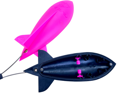 Raketa,která je perfektní pomůckou pro krmení na velké vzdálenosti, střední i krátké. Cílem našeho vývoje bylo dodat na trh krmící raketu, která bude propracována do nejmenších detailů a uspokojí potřeby každého rybáře. Praktická pomůcka právě přilétá! Parametry: Rozměr rakety 20 x 8 cm, 75 g hmotnost, Objem 0,25 l Patentovaný systém otevírání: Systém magnetů zaručuje bezproblémové otevření rakety po dopadu na hladinu a okamžité vysypání návnady. Snížený odpor při vytahování z vody: Jakmile raketa dopadne na hladinu, pomalu došponujte a z lehka raketu dostaňte k hladině. Až ji spatříte, pružným zásekem ji zavřete a stahujte ji prázdnou bez odporu. Nemusíte čekat na vysypání, návnada se rozptýlila nárazem o hladinu v sekundě a hlavně přesně tam, kam dopadla. Snadné plnění: Díky patentovému magnetickému systému nabíráte návnady jako bagr a bez sebemenších problémů ji okamžitě uzavíráte. Díky maximální těsnosti dopravíte návnadu na vaše místo v 100% stavu. Objem rakety je 0,25 l. Náhazování: Raketa je vyvinutá na zakrmování na různé vzdálenosti v závislosti na použití různé konfigurace magnetů. Díky svému aerodynamickému tvaru odhodíte návnadu o mnoho dál než s ostatními vnadícími pomůckami a co víc, mnohem přesněji. Při hodu nedochází k zamotávání a ani otevření rakety. Za větru díky svým letkám drží raketa maximálně směr hodu. I díky svému magnetickému systému můžete při náhozu „škrtnout“ špičkou rakety o zem. Neotevře se vám a nevysype se krmení po břehu, jako tomu dochází u jiných raket. Druhy návnad: Do rakety můžete dát jakoukoliv návnadu a nemusíte se obávat, že návnadami způsobíte otevření rakety nebo že se neotevře vůbec. Uvnitř rakety není žádný systém, který by způsoboval tyto nepříjemnosti. Jednoduše raketu naplňte boiliem, partiklem, method mixem, peletami a ty klidně můžete zalít například tekutou potravou, boosterem, esencí. Raketa je utěsněna a proto umožňuje dopravit na velkou vzdálenost i část atraktivních tekutin.