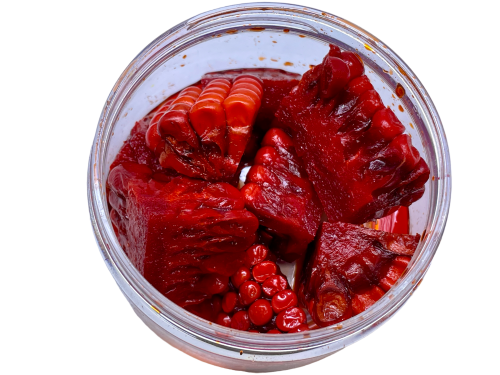 Nakládané kousky mladé kukuřice jsou velmi funkční nástrahou pro lov kaprovitých ryb. Kousky jsou vytažené z aromatických nálevů z aminokyselin, kde nějaký čas fermentovaly, tak aby byly pro ryby více atraktivní. Nástraha je zpracována tak, aby byla včetně dřevnaté části, která nástrahu vyvažuje a díky jednostrannému těžišti se i lépe zasékává. Co více, tato část dřevnaté nástrahy velmi dobře nasává naše speciální aroma a vylučuje ho pod vodou po velmi dlouhou dobu. Kapři budou také překvapeni jiným tvarem. Nástrahy se vyrábí ve třech velikostech S,M,L. Velikost S je pro feederové chytání, velikost M pro kaprové chytání a háčky č. 5- č.8 a Velká velikost L je určena pro lov kapitálních kaprů a háčky velikosti č.4 a více.