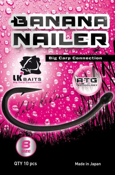 Na vývoji háčku Banana Nailer pracoval nejužší tým LK Baits s japonskými technology přes tři roky a nyní jsme šťastni, že jako první představujeme rybářům naprosto nový tvar háčku, který je propracován i do těch nejmenších detailů. Banana Nailer je vyroben naším technologem přímo v Japonsku za využití nejnovější technologie a použití nejkvalitnější japonské oceli a nejvyšší lidské dovednosti. Háčky prochází chráněným procesem ATG temperace, která jim dodává maximální pevnost a hlavně dlouhodobou ostrost. Nová matná povrchová úprava zase zaručuje dlouhodobou ochranu proti korozi a nesnižuje pevnost, jako je tomu u klasických teflonových háčků. Banana Nailer je jedinečný svým tvarem, na kterém jsme důkladně pracovali, abychom našli správný úhel k tomu nejdokonalejšímu záseku ryb. Setkáváte se tak s jedním z nejdokonalejších háčků, který vznikl na základě praktických zkušeností! Banana Nailer je jeden z nejuniverzálnějších háčků pro různé způsoby použití. Záměrně se vyrábí pouze ve velikosti č.8, která se nejvíce osvědčila. Díky vyhnutí háčku se Vám nabízí presentace nástrahy na několik způsobů s maximální účinností. Banana Nailer použijte na plovoucí boilies, mini boilies a nebojte se i velkých nástrah. Jak správně navázat montáž se dočtete ZDE: https://www.lkbaits.cz/carp-talk-moderni-nebo-ucinne-navazce/