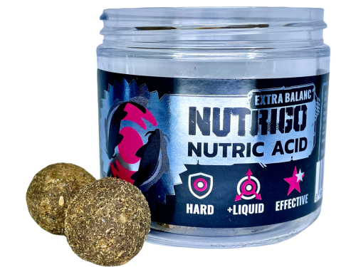 Jedna z našich nejúčinnějších příchutí, tentokrát konečně ve verzi NUTRIGO. Díky naší aminokyselinové tekutině uvnitř nástrahy, bude ještě intenzivněji lákat kapry ve vodním prostředí. Geniální sousto! Nutrigo Nutric Acid je vhodné na všechny typy vod, ale na štěrkopískovnách nemá konkurenci. Nástraha vodná k celoročnímu použití. Doporučujeme k nástraze přihodit hrstku NUTRIGO FEED-EX Monster Crab nebo boilies NUTRIC ACID. Nutrigo Balanc je vyrobeno vůbec z toho nejlepšího, co kdy bylo pro lov kaprů objeveno a doslova prošpikováno těmi nejlepšími přírodními nektary, které intenzivně unikají z nástrahy v závislosti na množství propíchnutí povrchu. A co víc? Nástraha je neutrálně vyvážená - nadlehčená, což mnohonásobně zvyšuje šance na záběr a úspěšné zaseknutí. Nutrigo Balanc je ZDE! Nutrigo Balanc propíchněte jehlou a klasicky navlékněte na vlas pod háček (doba účinku je až 24 hodin). Pro rychlejší uvolňování, krátkodobé vycházky nebo zimní rybaření, můžete nástrahu propíchnout vícekrát (doba účinku je až 12 hodin). Celoroční použití! Ruční výroba. Patentově chráněno. Uvedený průměr je orientační. Na povrchu nástrahy se může vyskytovat tekutina. Nástraha může měnit barvu. Obsah balení: 14 kusů nástrah