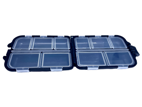 Tato malá krabička na drobnosti má 10 přihrádek a je ideální na přehledné a praktické umístění obratlíků, rovnátek, kroužků, těžítek apod.