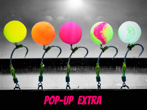 Moderní technologie výroby přináší zcela nový druh nástrahy, která je více atraktivnější a zároveň více vzlínavější. Nástraha POP-UP EXTRA je až 2x více plovoucí a proto ji můžeme použít i pro montáže typu RONNIE RIG, CHOD RIG, ale také pro větší hloubky. Zcela nový druh POP-UP je poloměkké (více aromatické) a přesto vydrží ve vodě delší dobu. Obsahuje: osvědčená aromata, přírodní sladidlo NHDC, atraktivní FLUORO barvy. Pozor pracujeme s přírodními esenciálními oleji, které v průběhu času mohou měnit barvu produktu avšak to není v žádném případě na závadu.