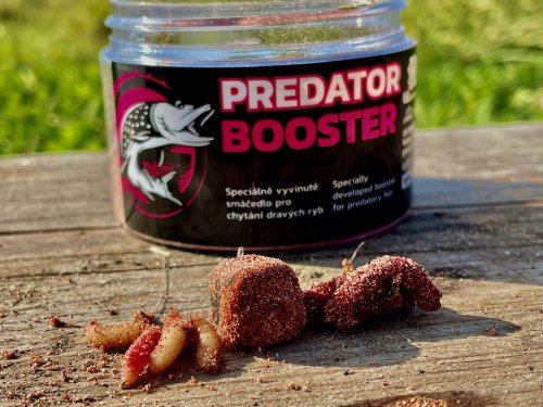 Bakteriálním procesem rozkladu přírodní hmoty jsme navíc docílili důležitého potravního signálu, s nímž se dravé ryby přirozeně setkávají v případě uhynulých rybek nebo jiných živých organismů. Booster Predátor se vyznačuje vysokou přilnavostí k nástraze a po vhození do vody okamžitě uvolňuje atraktanty do okolí, čímž vytváří neodolatelnou stopu.
