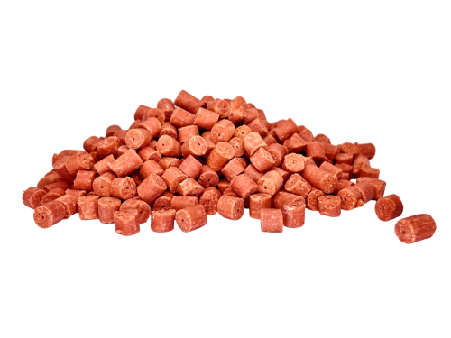 Novinka na trhu! Pelety vyrobené z lososové pasty s jemným kořenitým nádechem. Pelety jsou vyrobeny lisováním pouze kvalitních ingrediencí na naší moderní peletovací lince. Studený technologický proces zaručuje stálost kvality, vynikající stravitelnost a velkou atraktivitu. Pelety jsou určené pro vnadění a chytání všech kaprovitých ryb, ale svou úspěšnost zaznamenaly i při lovu jeseterů a sumců. Pelety nejsou napuštěny levnými oleji se sklony ke žluknutí, ale především kvalitní tekutou potravou All Amino Nutric a stabilizované pouze přírodními látkami.