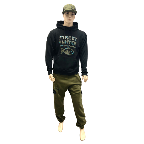 Tepláky značky  LK baits z nové kolekce Street hunter.  Praktické rybářské tepláky, které jsou vhodné pro běžné nošení ale především pro volný čas na rybách. Jsou velmi příjemné a především praktické. Hluboké boční kapsy, zadní kapsa na suchý zip, široký lem pasu a kvalitní pevnou gumu u nohavic, aby Vám netáhlo na nohy, nohavice se nevyhrnovaly a lehce jste obuli holinky. Tepláky jsou v praktické camo barvě. Černá zadní kapsa a černé klopy na kapsách, doplněné vkusnými nápisy a logem Street hunter.