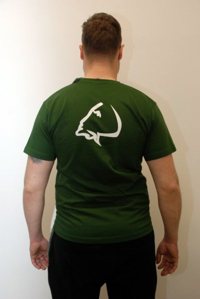 Kvalitní 100% bavlněné triko zelené barvy s logem hlavy kapra.